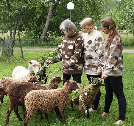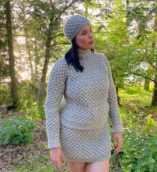 Den omgivande naturen, fårena ,skärgårdslivet , Vikingatidens sägner och Kalevalavärlden är en aldrig sinande inspirationskälla till mina mönster. Då varje spinningssats består av en blandning av olika fibrer från olika fårs ull varierar färgnyanserna för varje gång. Färgerna på tröjan ger farschinerande nyanser beroende på hur färgerna som kombineras ihop. Ljuset bryts olika i naturfibern. Min målsättning är att produkten skall vara skön mot kroppen , materialet och motivet tidlöst ,i balans och motsvara dagens medvetna konsumenters önskemål.